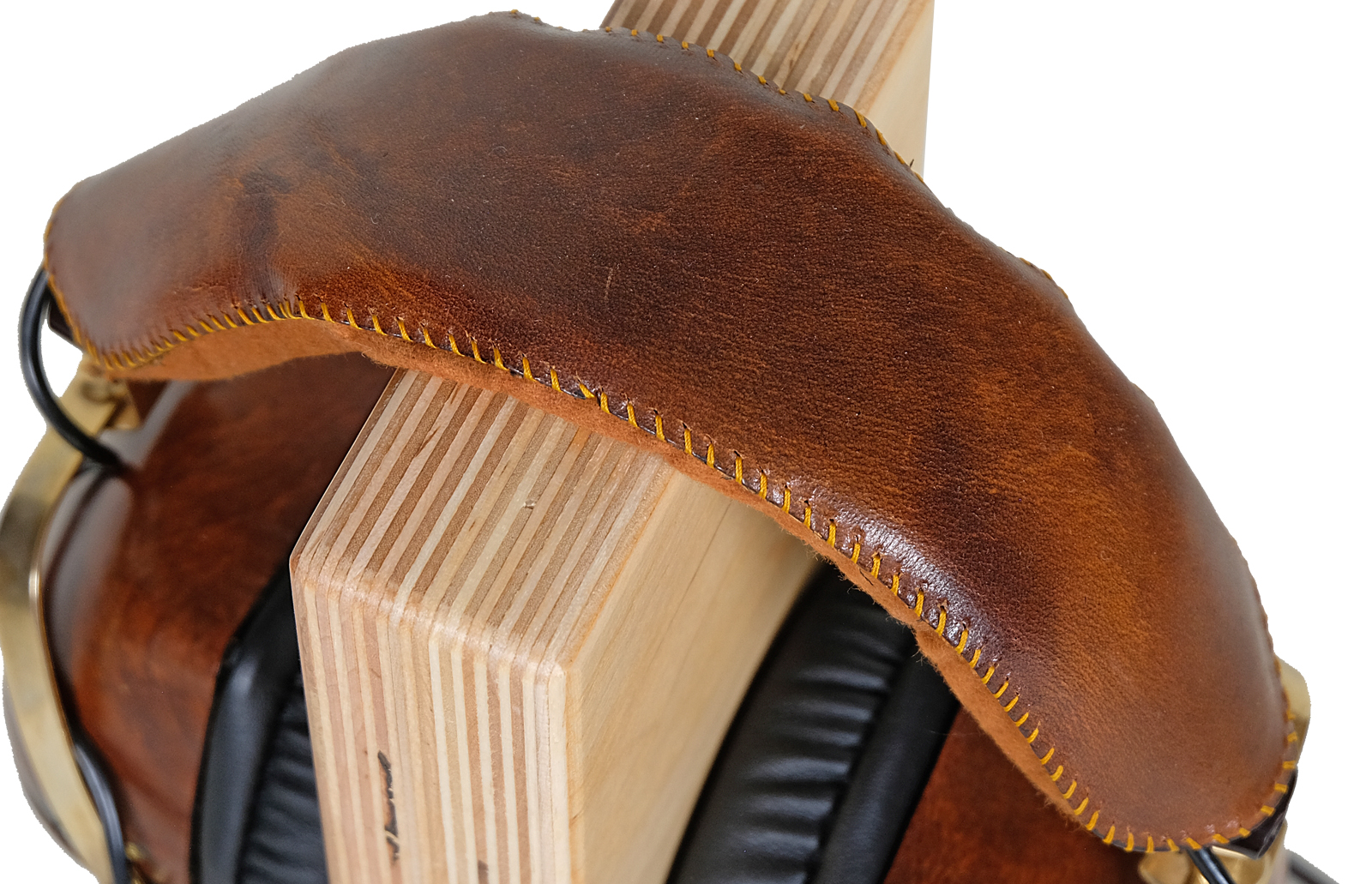 Specjalnie zaprojektowane i ręcznie wykonane solidne standy na słuchawki w zestawie. Materiał to sklejka polakierowana przy użyciu samochodowej techniki lakierniczej „na mokro”, co nadaje standom piękny wygląd i sprawia, że są bardzo miłe w dotyku. Podstawa została podklejona filcem, aby zabezpieczyć meble przed zarysowaniem.