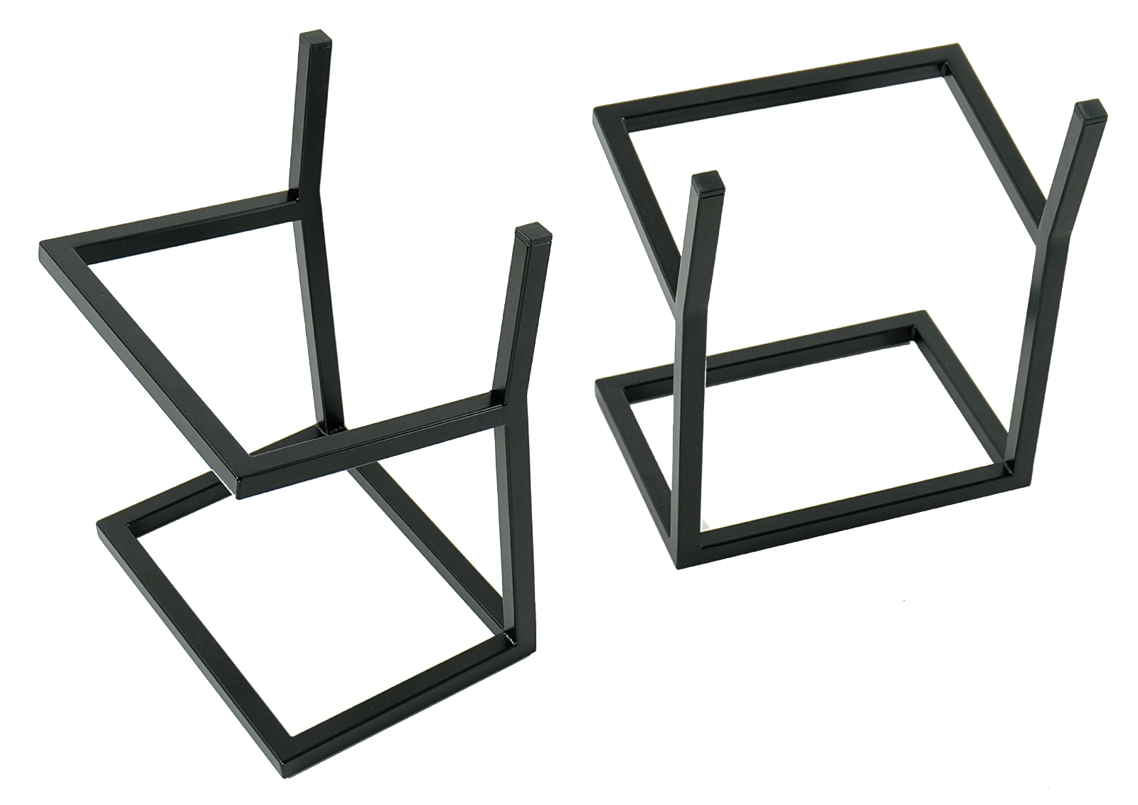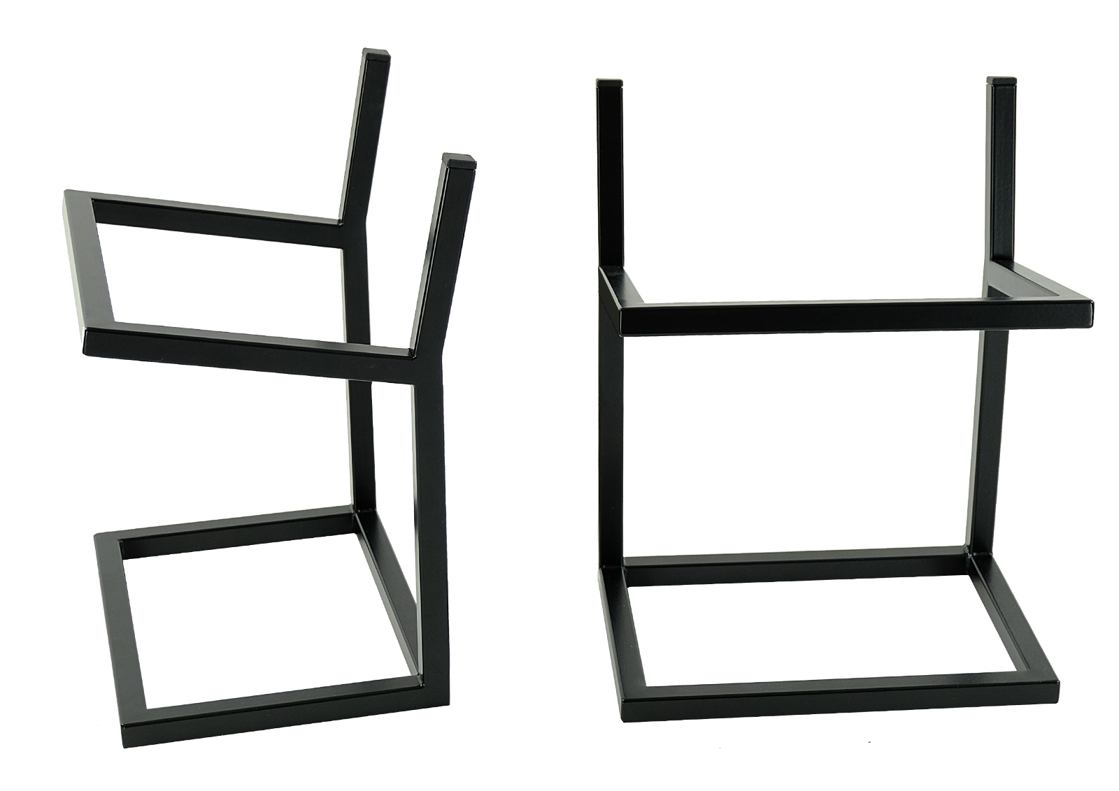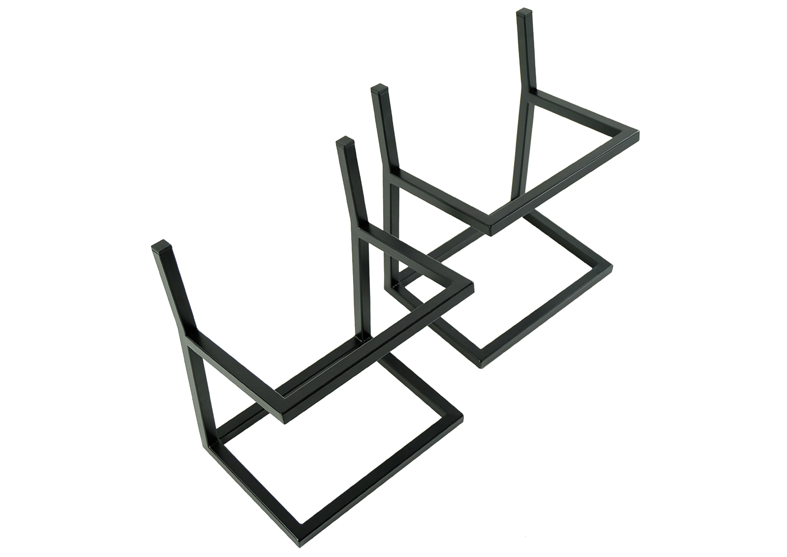 Stojaki wykonane z metalu, z kształtownika zamkniętego o przekroju 2cm x 2cm..