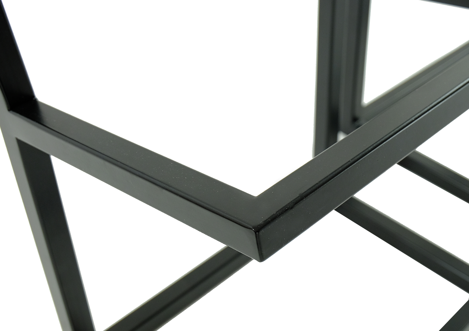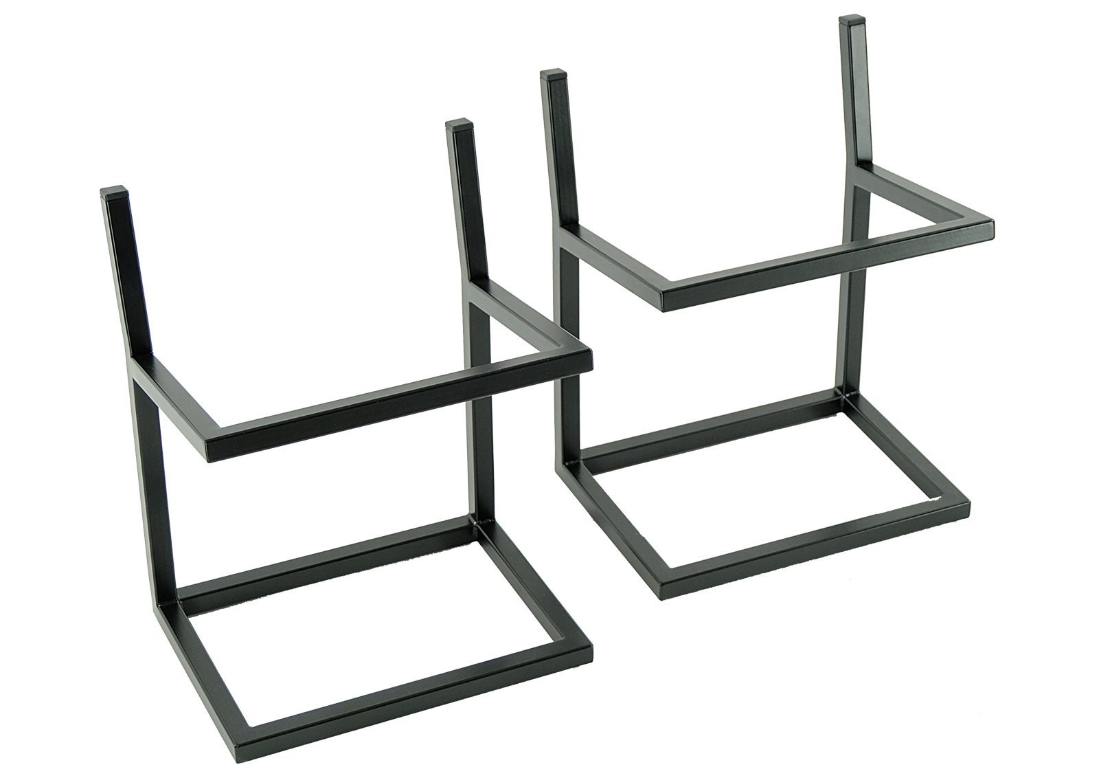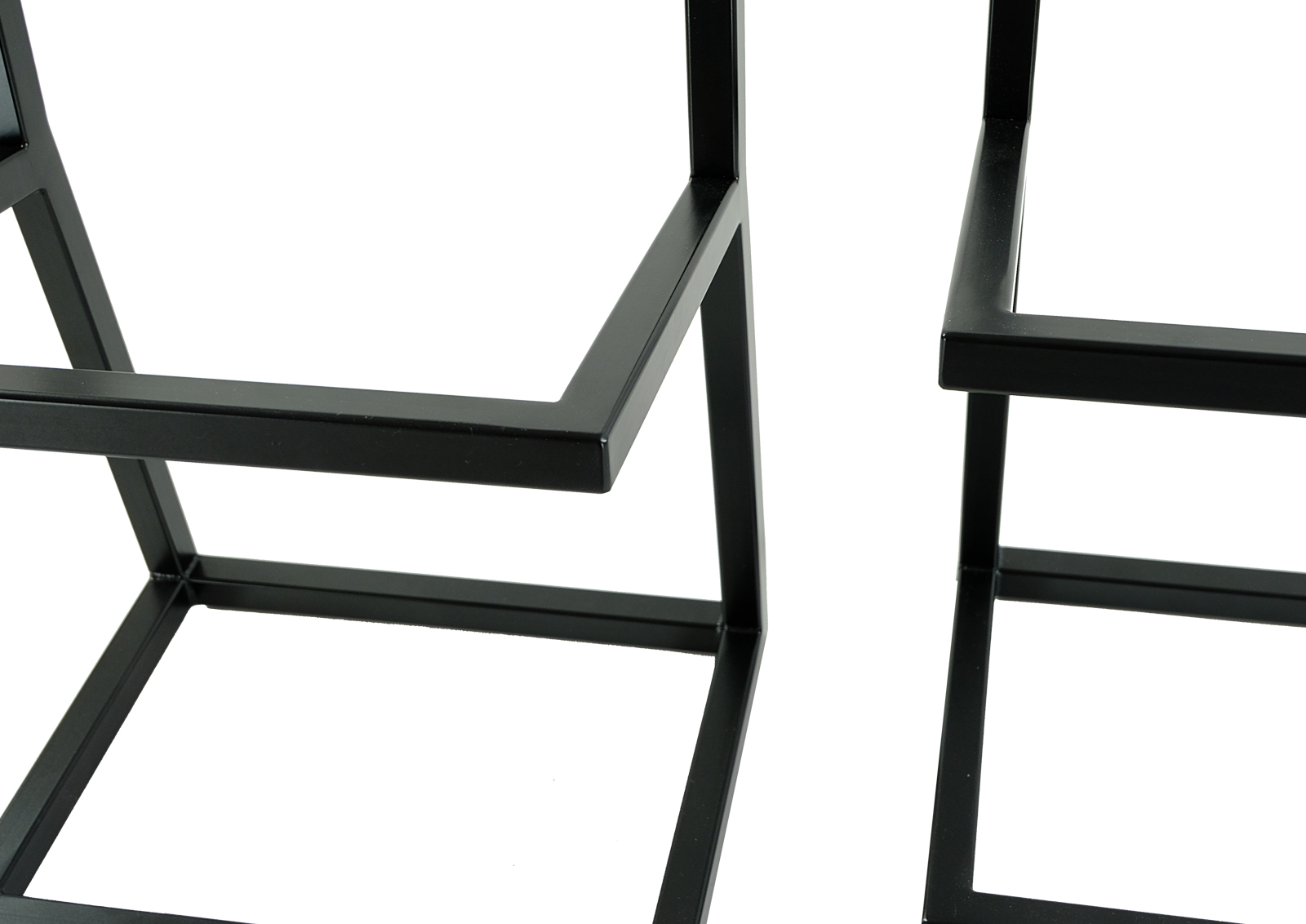 Stojaki wykonane z metalu, z kształtownika zamkniętego o przekroju 2cm x 2cm..