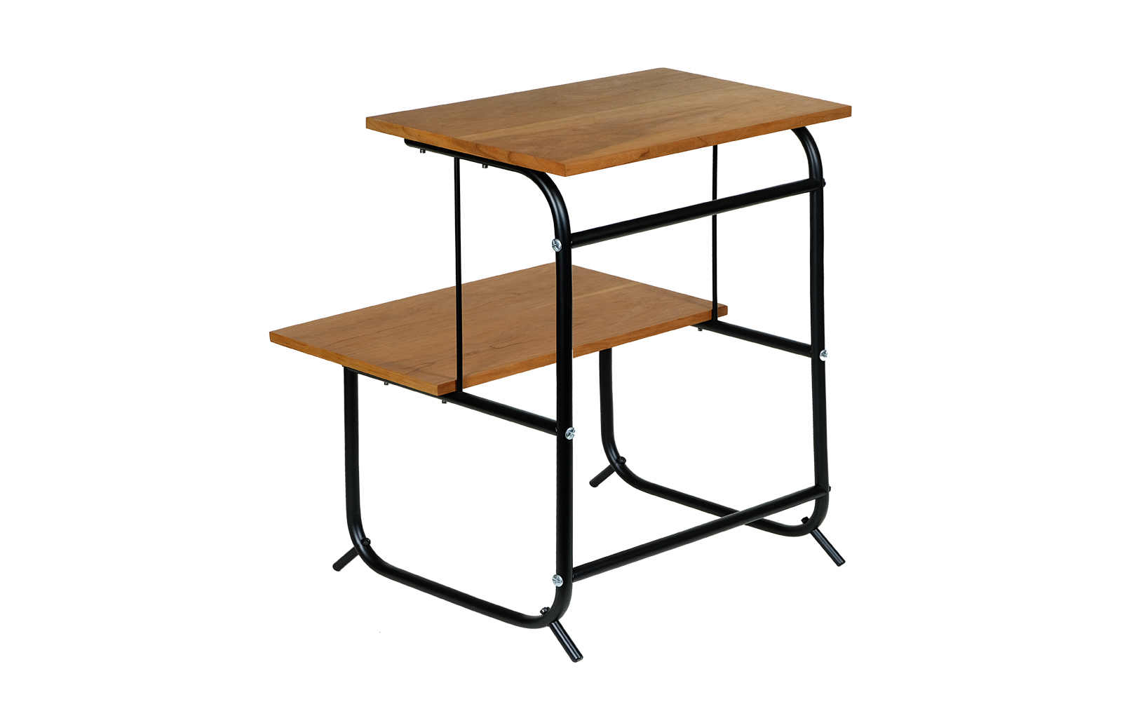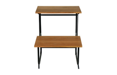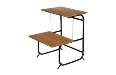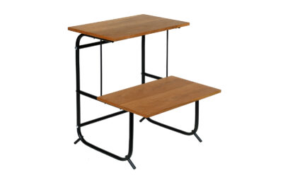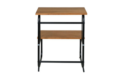 Stolik  został całkowicie oczyszczony ze starych powłok lakierniczych. Oklejony obłogiem z czereśni amerykańskiej.  Zabezpieczony olejem na bazie naturalnych olei chińskich, przyjaznym dla środowiska. Blaty woskowane, odporne na działanie wody. Elementy metalowe do montażu mebla zostały wypiaskowane i pomalowane farbą proszkową.