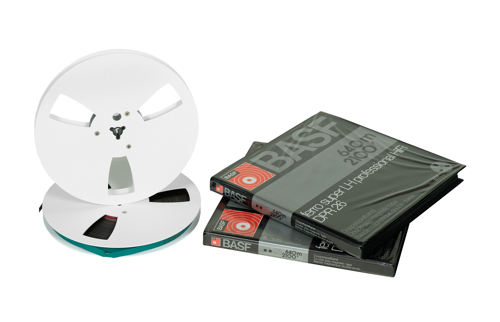 Szpule aluminiowe BASF 18cm. Taśma BASF DPR 26. Classic Vintage. White