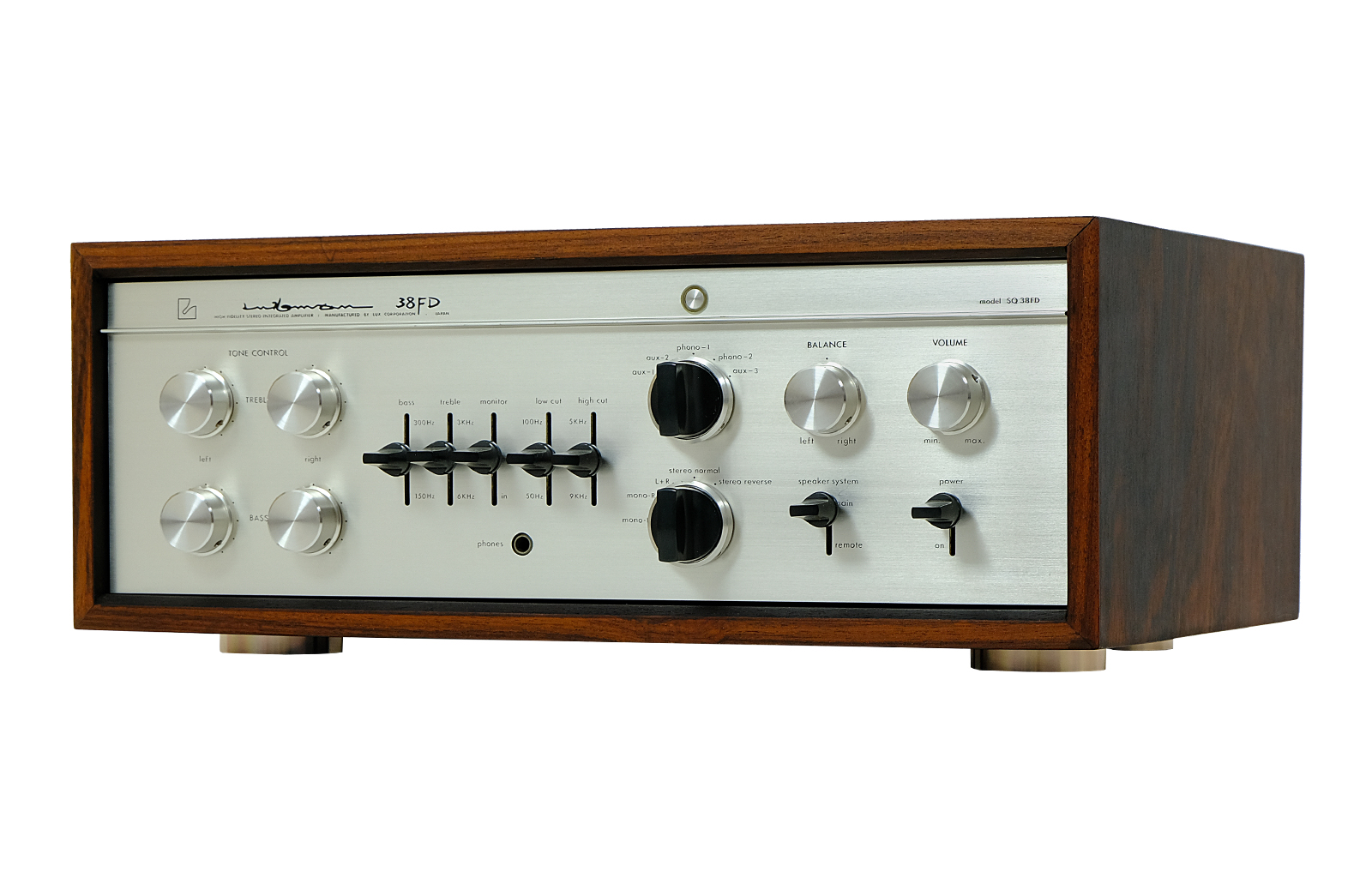 SQ-38 to kultowy wzmacniacz lampowy Luxmana zaprojektowany przez wybitnego japońskiego inżyniera Kazouyouki Doi i pozostający w ciągłej produkcji od 1963 roku. Model FD charakteryzuje się pięknym prostym dizajnem oraz bardzo solidną, wykonaną z najwyższej jakości materiałów i ważącą aż 28kg konstrukcją. Ponadto wzmacniacz wyróżnia się specyficznym ciepłym, gładkim i miękkim brzmieniem. Dźwięki są zaokrąglone i bardzo przyjemne dla ucha, a niezwykle bogata scena muzyczna pozwala poczuć się jak na koncercie. Ten model polecamy szczególnie amatorom jazzu i soulu.