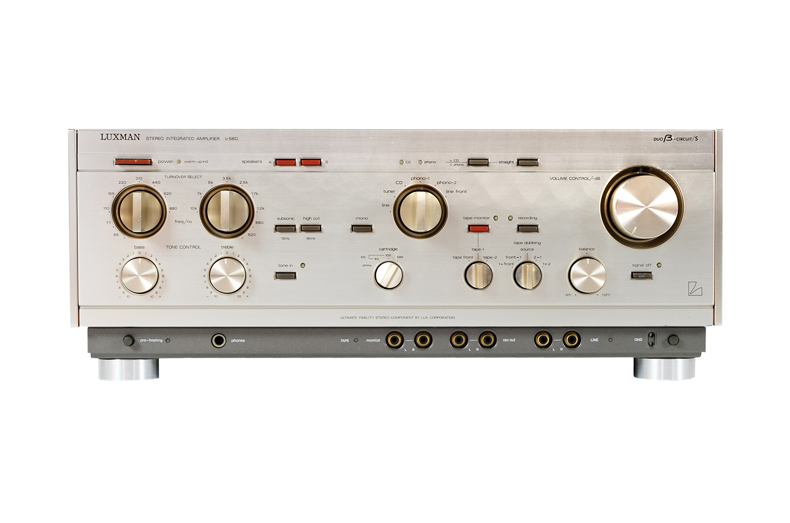 L-560 to wzmacniacz klasy A wypuszczony na rynek przez firmę Luxman w 1988 roku. Ta wyjątkowa nowsza wersja bestsellera L-550 charakteryzuje się znacznie lepszą od swojego poprzednika specyfikacją (stosunek sygnału do szumu, współczynnik THD etc.). L560 wyróżnia się pięknym klasycznym, prostym dizajnem. Obudowa wykonana została z najwyższej jakości materiałów. Kluczowe części pokryte są miedzią, aby usunąć zniekształcenia magnetyczne, a kondensatory dzięki swojej budowie całkowicie eliminują rezonans mechaniczny zapewniając w ten sposób najwyższą czystość dźwięku. Luxman L560 jest niezwykle muzykalny i szczegółowy. Charakteryzuje się ogromną i bogatą sceną muzyczną, która angażuje każdego słuchacza. Bas jest szybki, dobrze wyartykułowany, a zarazem głęboki i czysty. Środek wyróżnia się wyjątkowo przyjemnymi, ciepłymi tonami, które może uzyskać tylko klasa A. Góry są rozszerzone i szczegółowe ale nigdy ostre czy krzykliwe.