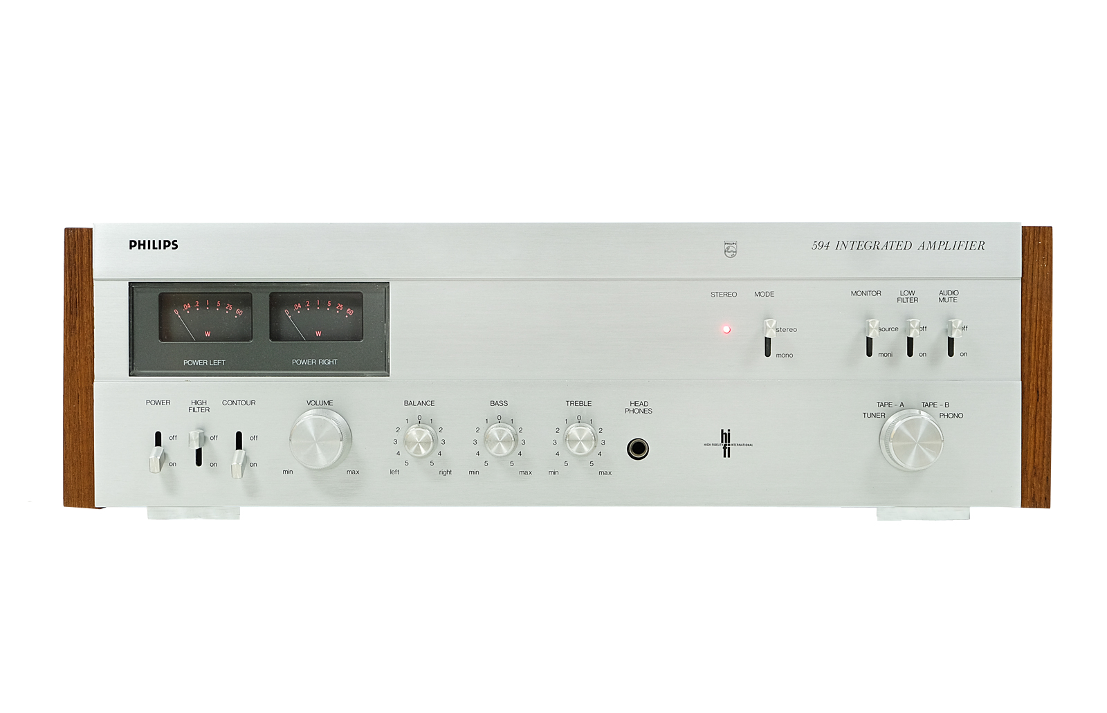 Model 594 Integrated Amplifier to wzmacniacz charakteryzujący się pięknym, ciepłym i miękkim brzmieniem oraz klasycznym i eleganckim dizajnem. Na uwagę zasługują przede wszystkim minimalistyczny w swojej formie panel przedni wykonany ze szczotkowanego aluminium i stereofoniczne, wychyłowe wskaźniki mocy, które po rewitalizacji zyskały piękne czerwone podświetlenie. Model 594 był rekomendowany przez inżynierów Philipsa jako część wysokiej jakości wieży Hifi 458, w której skład wchodziły również gramofon AF 777, tuner 694 T i magnetofon kasetowy N 2544.