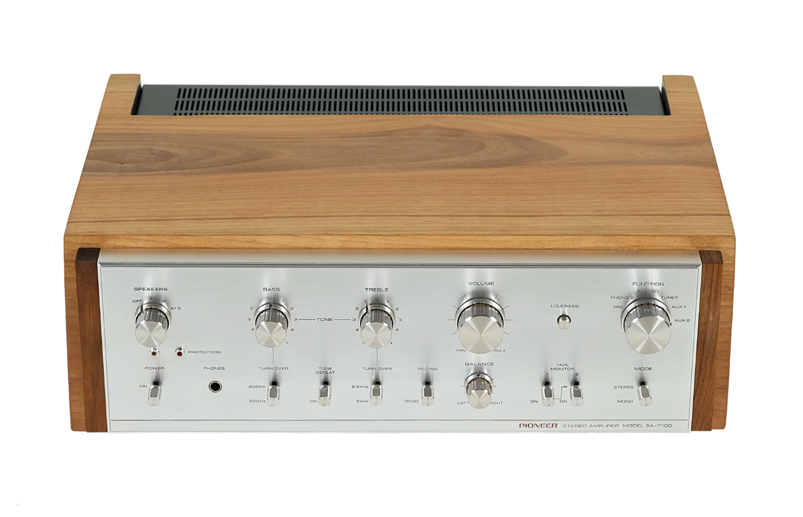 Natomiast firma Pioneer w swoim katalogu z 1974 roku rekomendowała SA-7100 jako „nowoczesny wzmacniacz HiFi o niezwykłej łatwości użytkowania”. W przypadku tego modelu można mówić również o przyjemności użytkowania, gdyż został on wyposażony w piękny prosty panel ze szczotkowanego aluminium oraz świetnej jakości pokrętła i przełączniki.