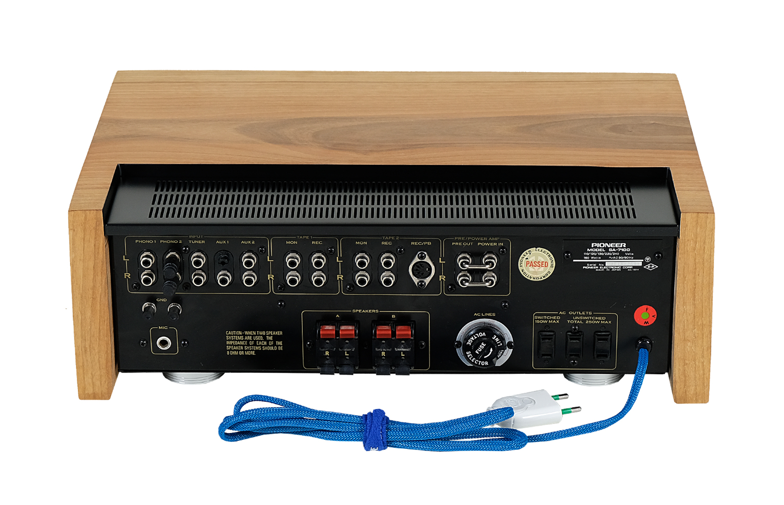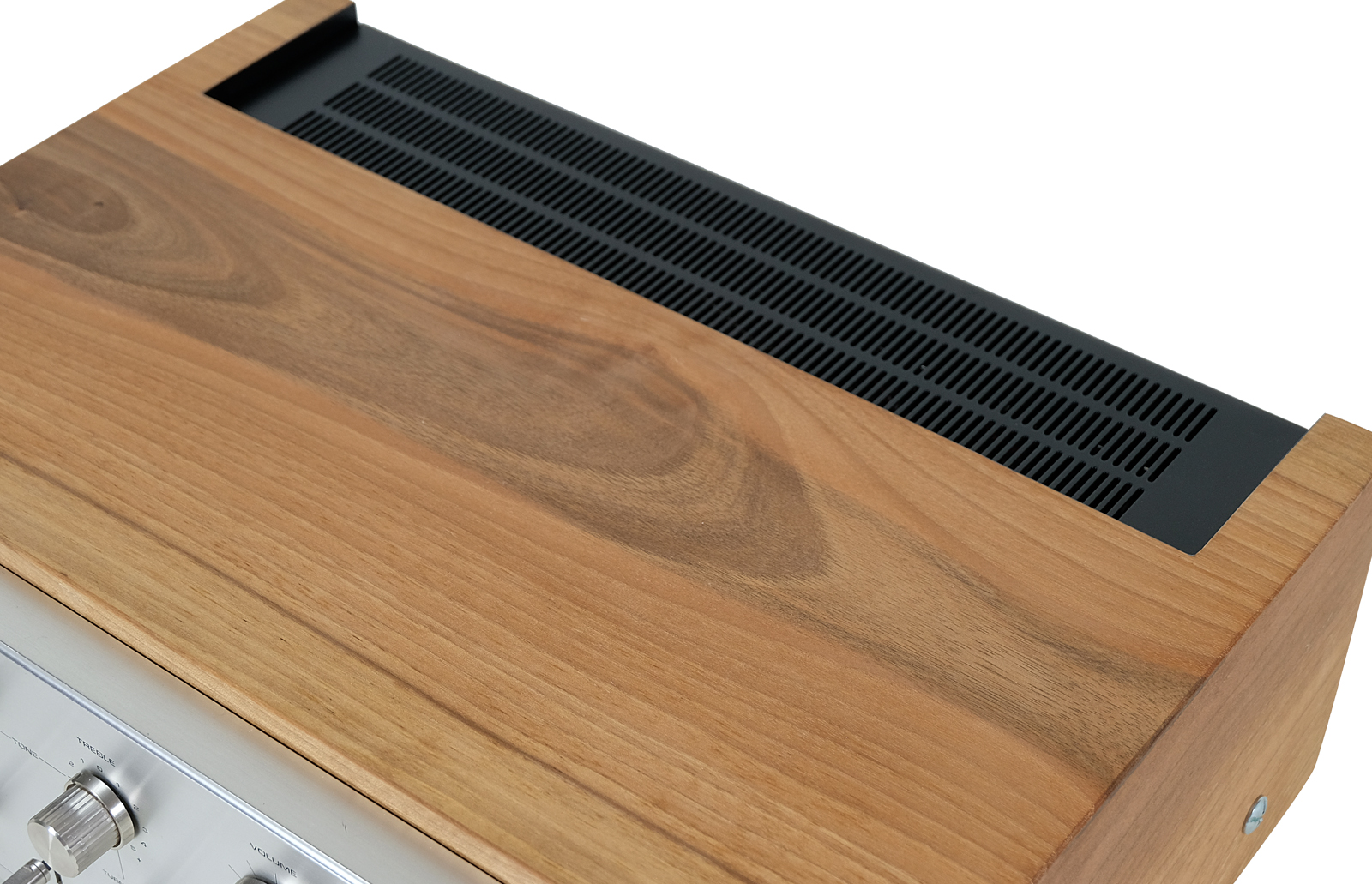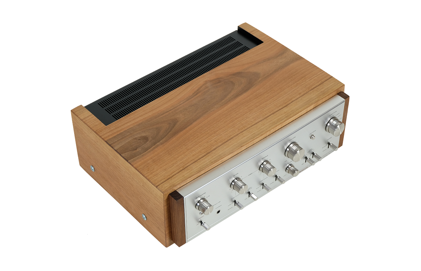 Prezentowany model został wyposażony w nową powiększoną obudowę z drewna orzecha włoskiego, która podkreśla jego piękny charakterystyczny dla lat 70tych dizajn. Wykończenie drewna to olej chiński produkowany na bazie naturalnych olej. Potencjometry w idealnym stanie. Metalowe elementy obudowy zostały oczyszczone i pomalowane przy użyciu samochodowej techniki lakierniczej „na mokro”. Urządzenie po całkowitym przeglądzie i serwisie.